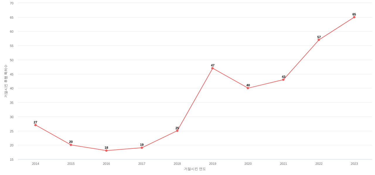 2) 엔에이치엔가 보유하고 있는 특허가, i) 후속 특허에 의해 많이 인용되고 있는지(기술 영향력), ii) 후속 특허를 거절하는데 다수 사용되고 있는 지(기술 리더십)를 통해서, 이 기업의 기술 역량을 분석해 보세요. 특히, 이러한 동향이 최근에 빠르게 증가하고 있는지도 확인하세요.