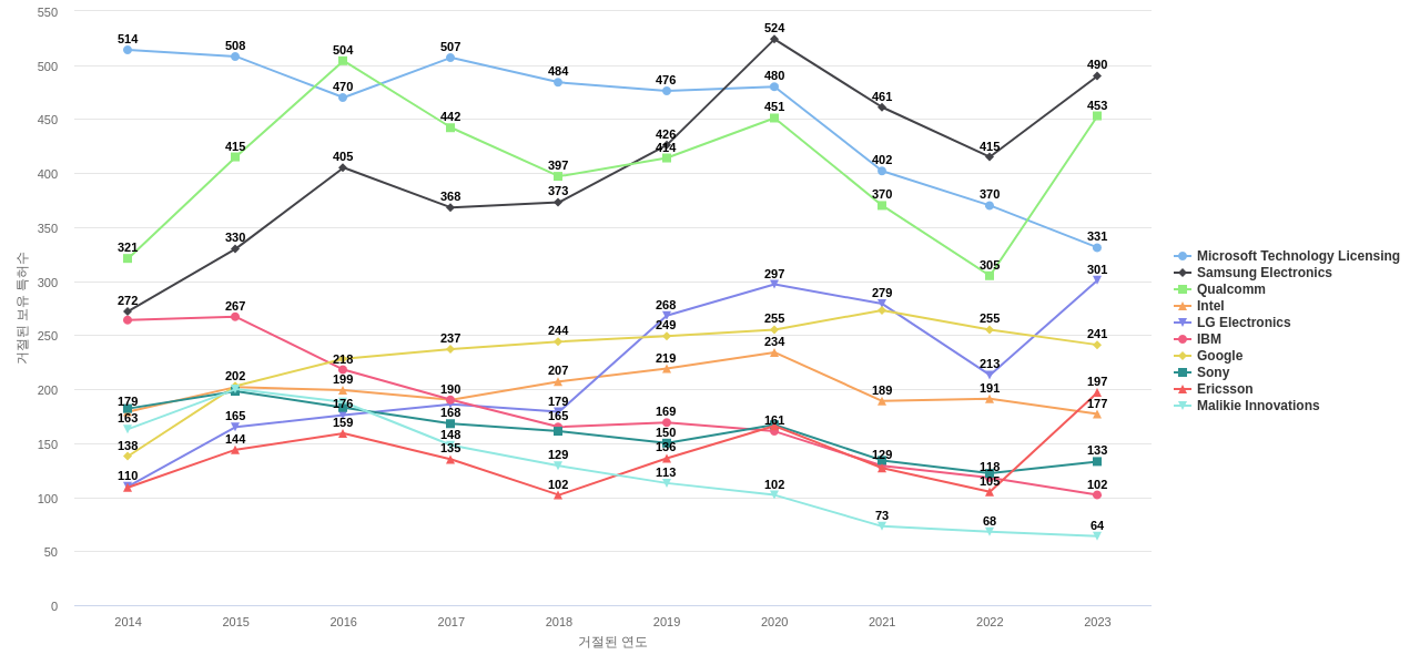 Microsoft Technology Licensing의 심사관 레퍼런스수는 7,412회입니다. Microsoft Technology Licensing의 심사관 레퍼런스수는 11년 이전부터 발생하기 시작하여 2019년에 944회의 최고값을 보입니다. 그리고, 이 값은 이번 연도인 2024년에는 592회, 1년 전인 2023년에는 646회, 2년 전인 2022년에는 746회를 보입니다.