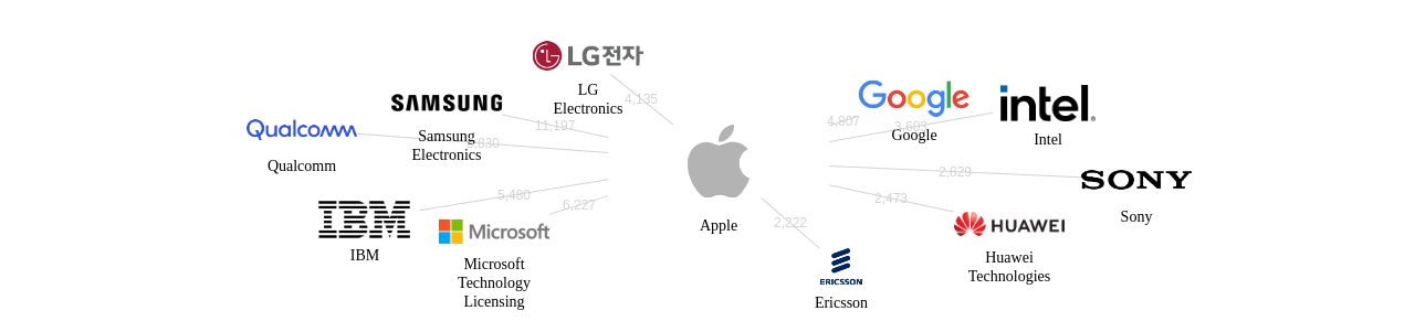 이 기업 보유 후행 특허가 참조하는 심사관 레퍼런스수가 많은 관련 기업에는 1위 Samsung Electronics(8,832회), 2위 Microsoft Technology Licensing(7,412회), 3위 Qualcomm(6,298회) 등이 있습니다.