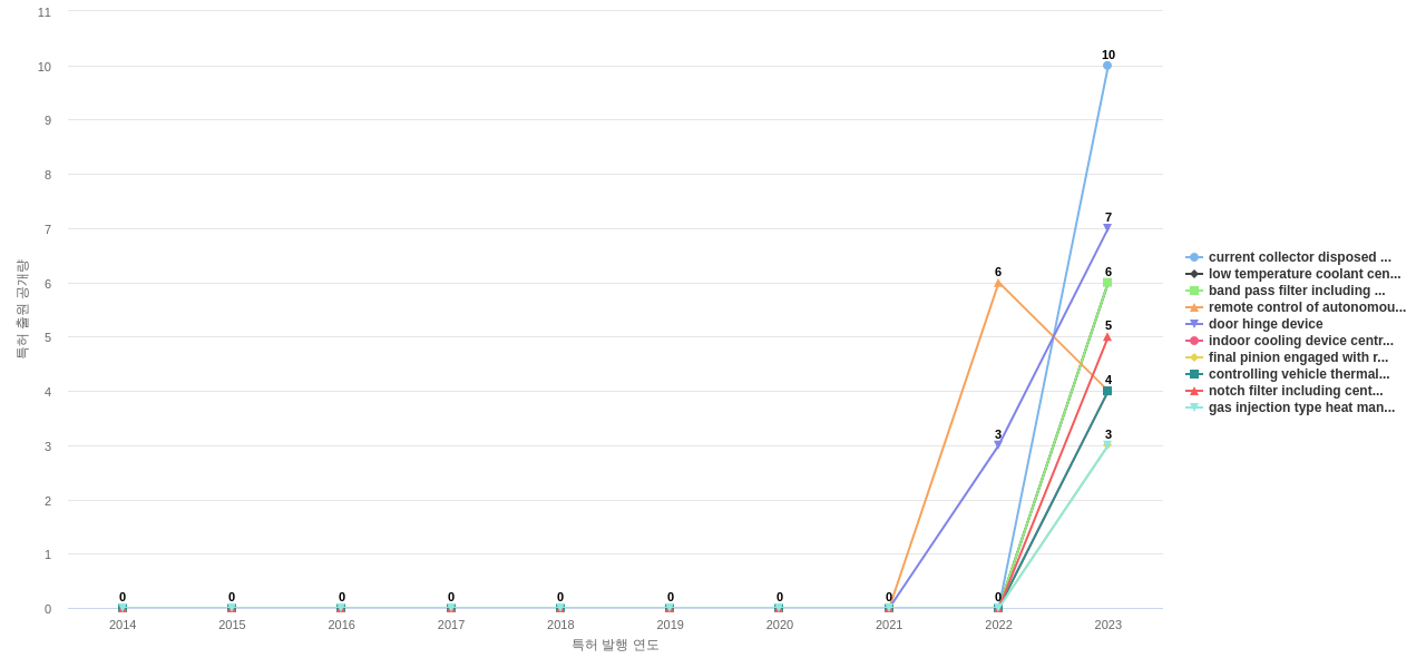 3) [제품 기획 조직]/[마케팅 조직] 현대자동차의 최신 특허를 분석하여, 그 기업의 근 미래 제품/서비스에 반영될 포함된 부품, 소재-물질, 기능-작용, 컨셉 표현 키워드를 early stage에서 i) 센싱하고, ii) 조직적으로 전파하고, iii) 전략적인 대응을 수행해야 하지 않을까요?