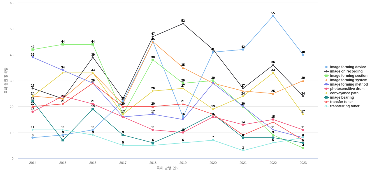 2) [R&D 조직]/[마케팅 조직] 교세라 도큐먼트 솔루션즈의 특허에 포함된 신규 등장 키워드나 컨셉 표현 빅데이터를 활용하여, 여러분의 i) R&D의 기획, ii) 융합-복합-응용-활용 분야에 대한 ideation, 발굴, 스크리닝, iii) 특허 포트폴리오의 체계적인 확장을 시도해야 하지 않을까요? 거인의 어깨 위에 있으면 거인보다 멀리 볼 수 있습니다.