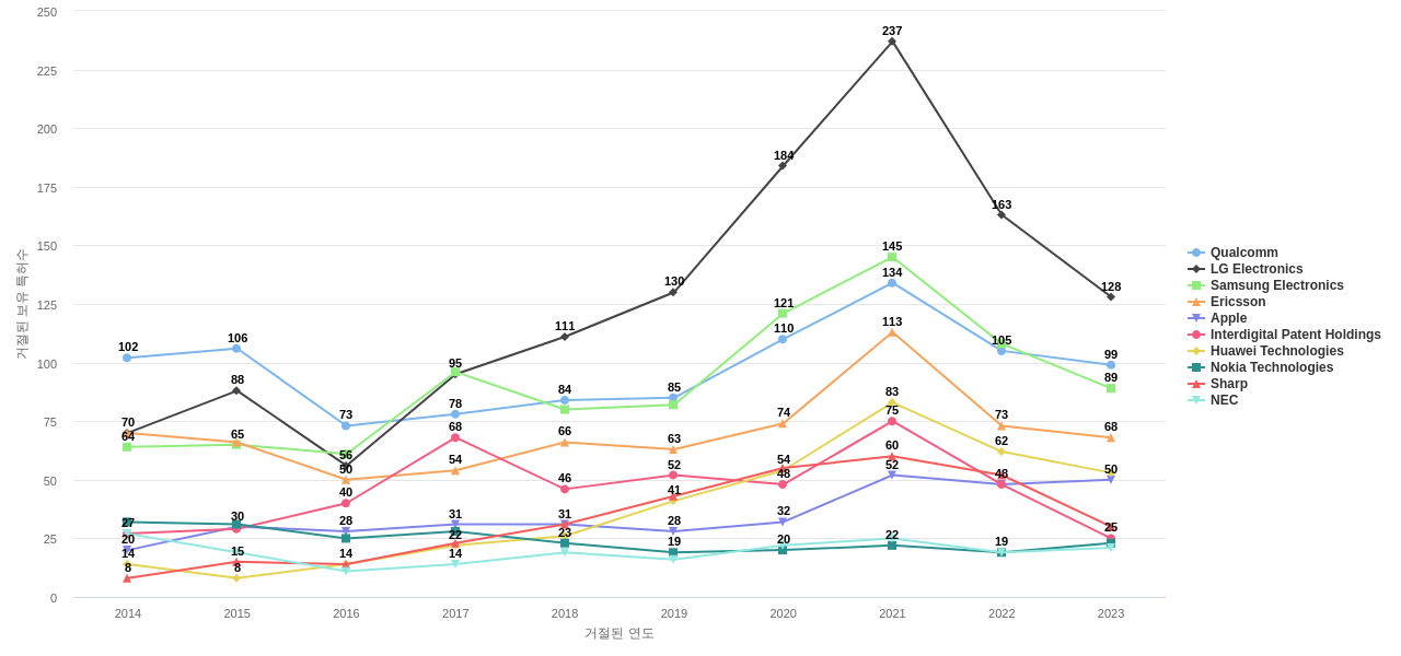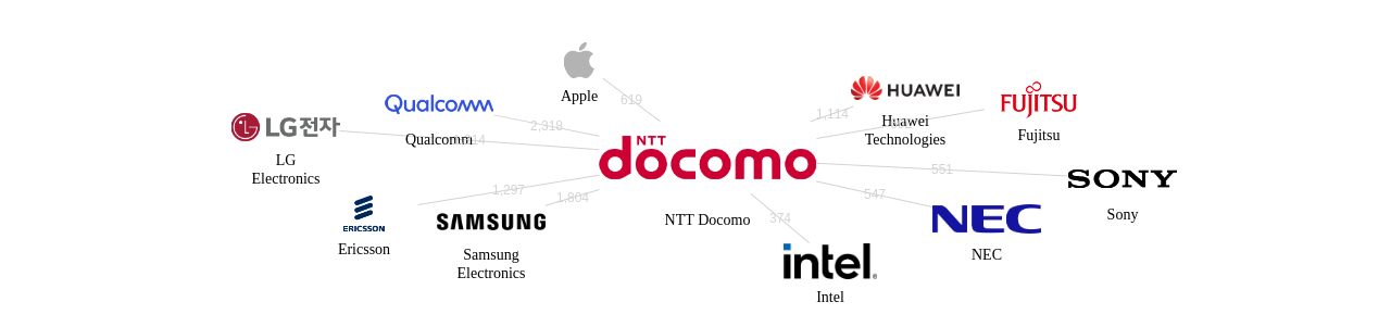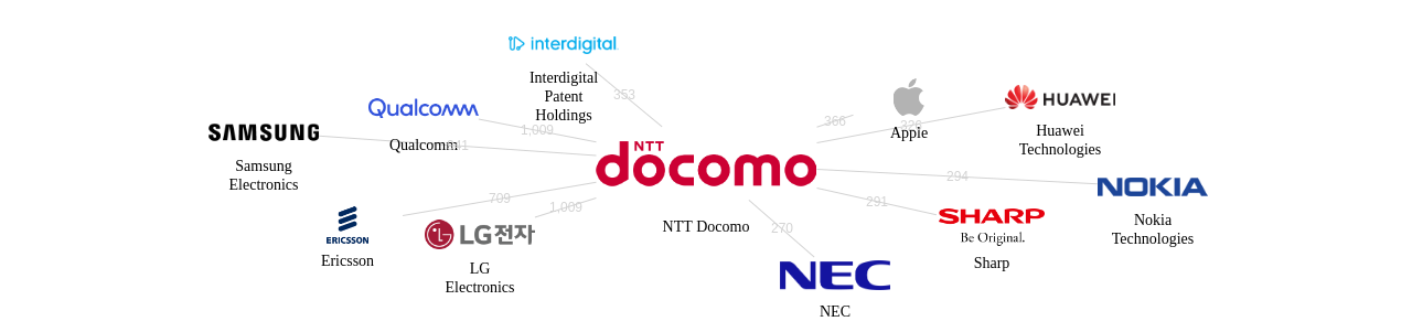 이 기업 보유 선행 특허가 받은 심사관 피인용수가 많은 관련 기업에는 1위 Qualcomm(2,318회), 2위 Samsung Electronics(1,804회), 3위 LG Electronics(1,314회) 등이 있습니다.