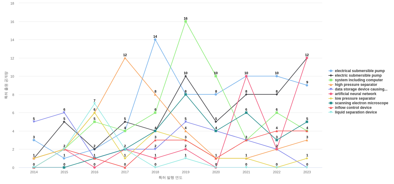 lost circulation material의 공개 특허수는 171건입니다. lost circulation material의 공개 특허수는 2014년에 1건으로 최초 발생하여, 2019년에 57건의 최고값을 보입니다. 그리고, 이 값은 이번 연도인 2024년에는 5건, 1년 전인 2023년에는 11건, 2년 전인 2022년에는 17건을 보입니다.