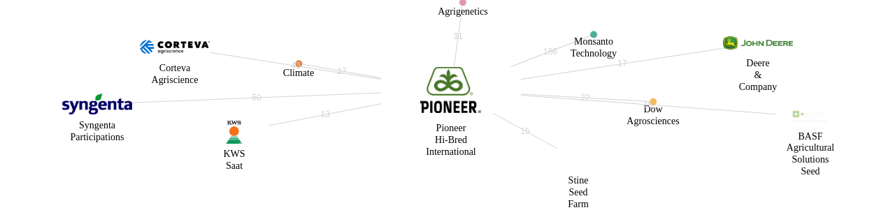 이 기업 보유 선행 특허가 받은 심사관 피인용수가 많은 관련 기업에는 1위 Monsanto Technology(396회), 2위 Agrigenetics(150회), 3위 Syngenta Participations(110회) 등이 있습니다.