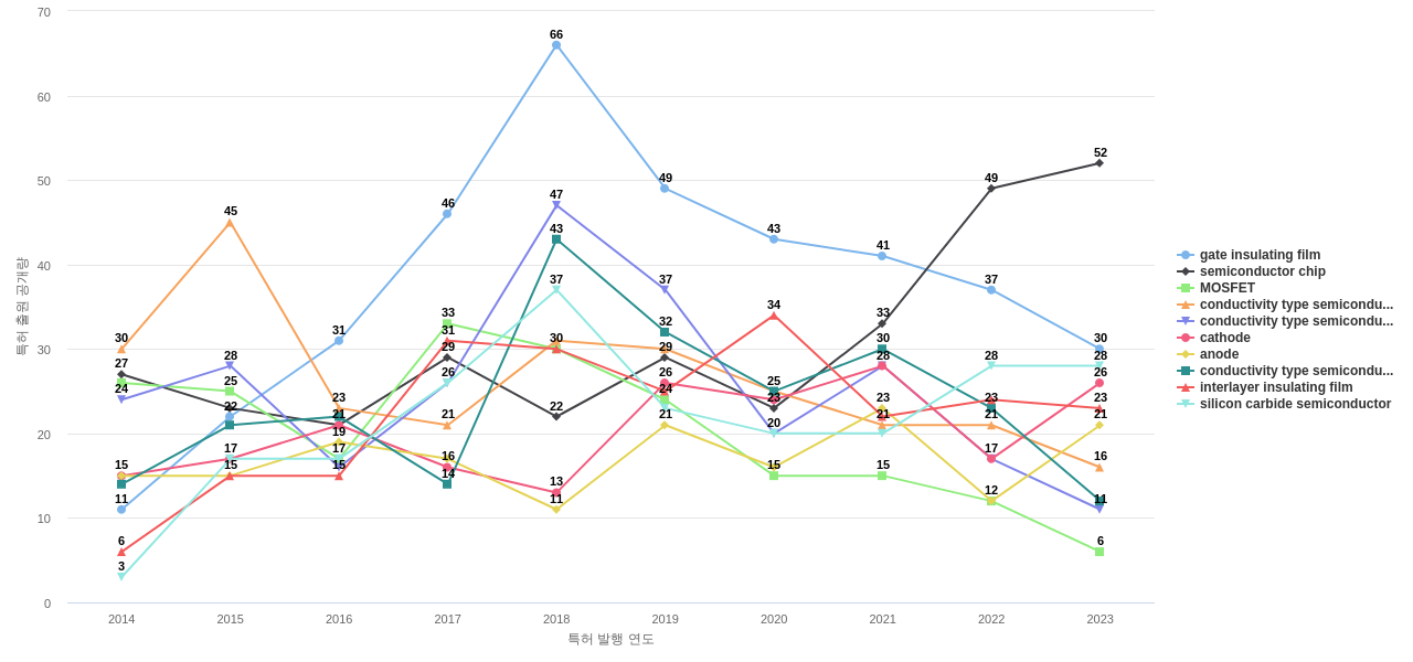 1) [기술 기획 조직]/[IP 조직] 후지전기의 특허에 포함된 신규 등장 키워드나 급성장하고 있는 키워드(제품-부품, 소재-물질, 기능-작용, 컨셉 등)를 i) 파악하고, ii) 체계적으로 테크 센싱을 수행하며, iii) 그 결과를 필요 조직에 전파해야 하지 않을까요? 특히, 고객, 주요 기업, 경쟁사, 밸류 체인이나 공급망 구성 기업인 후지전기라면 이러한 활동이 더욱 더 중요하지 않을까요?