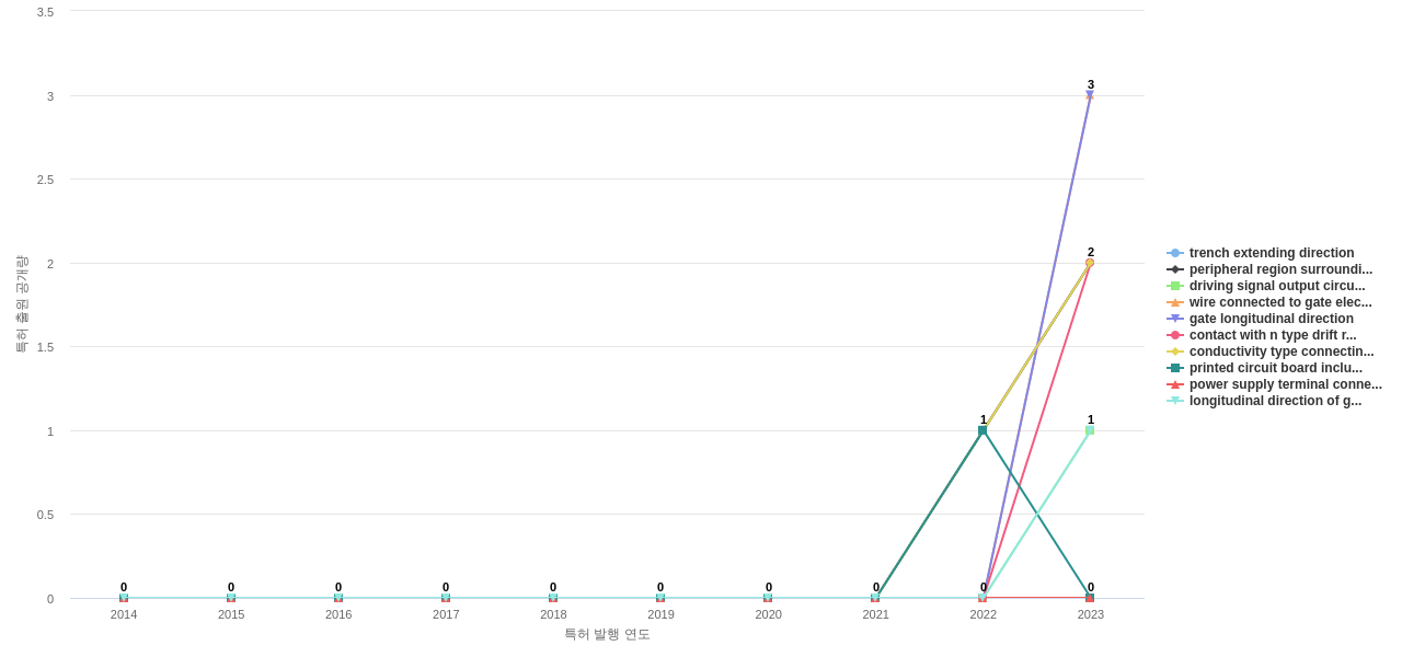 3) [제품 기획 조직]/[마케팅 조직] 후지전기의 최신 특허를 분석하여, 그 기업의 근 미래 제품/서비스에 반영될 포함된 부품, 소재-물질, 기능-작용, 컨셉 표현 키워드를 early stage에서 i) 센싱하고, ii) 조직적으로 전파하고, iii) 전략적인 대응을 수행해야 하지 않을까요?