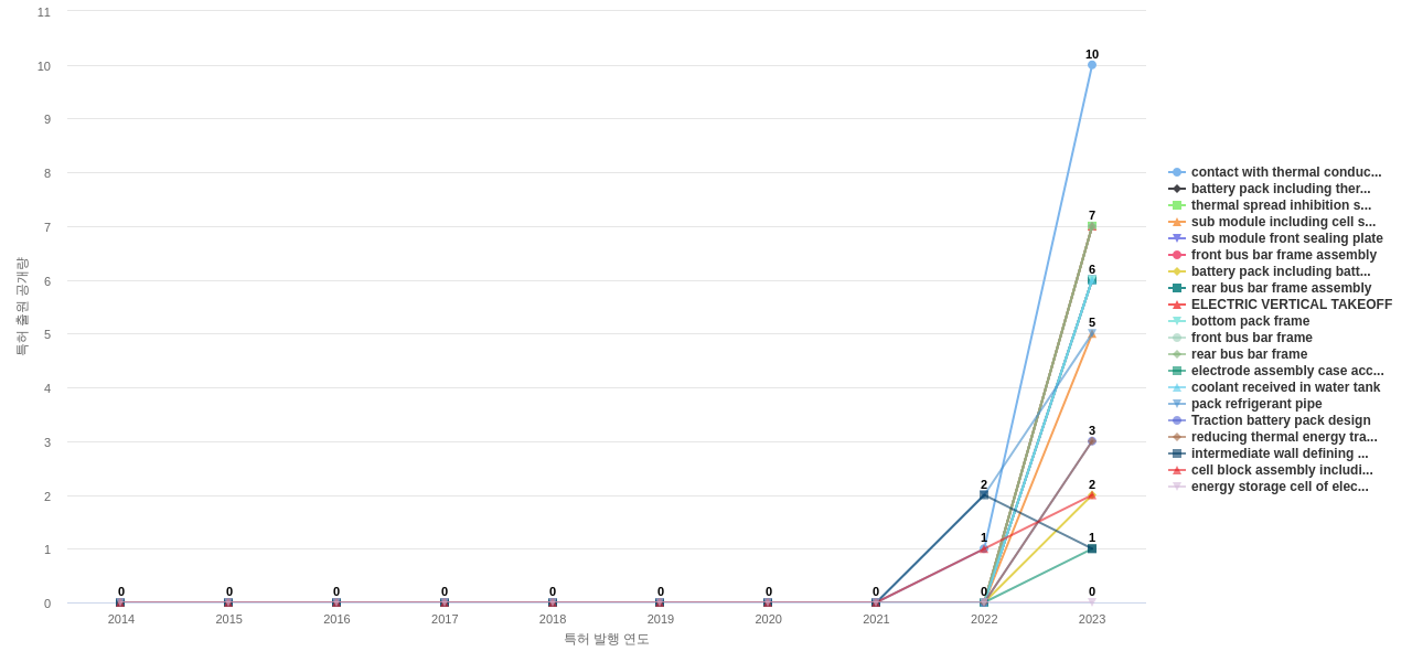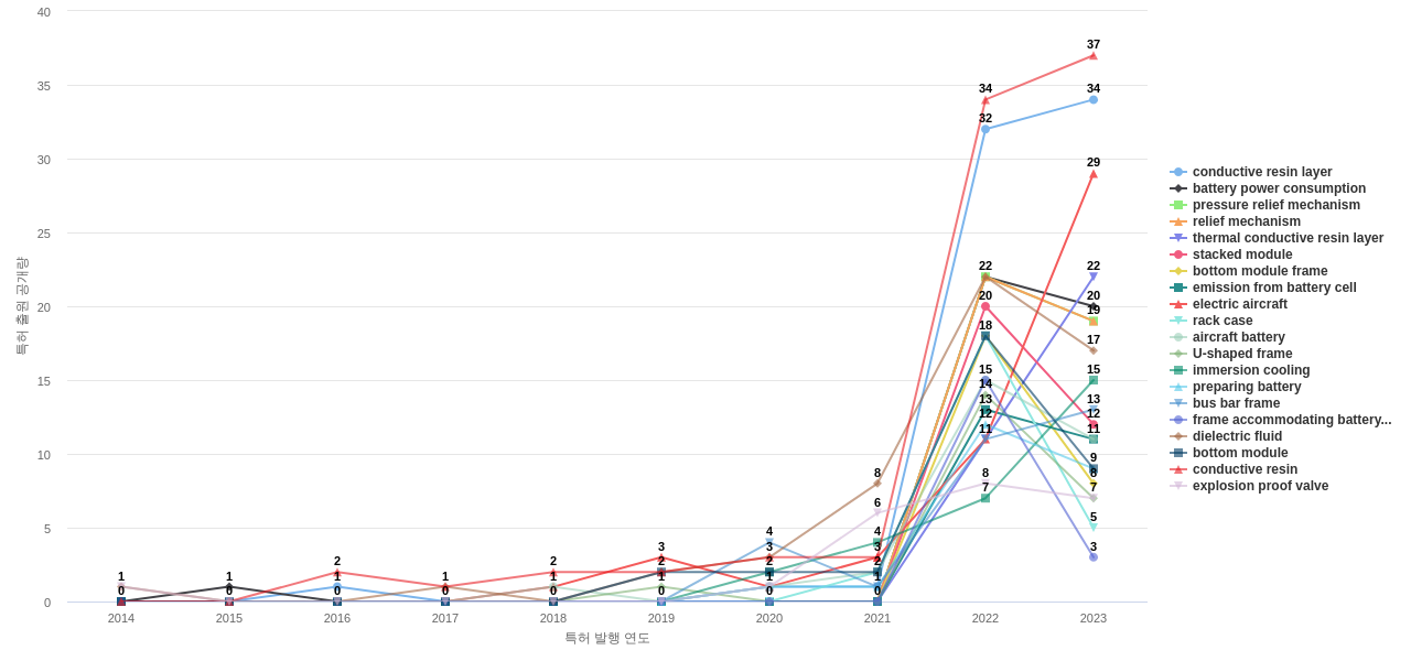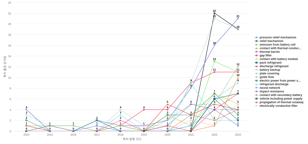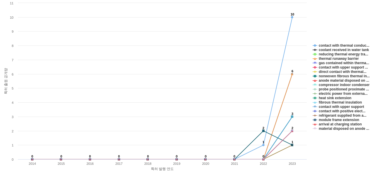 3) [제품 기획 조직]/[마케팅 조직] 고객사, 주요 기업, 경쟁사, 밸류 체인이나 공급망 구성 기업의 배터리 온도 제어 분야의 최신 특허를 분석하여, 타겟 기업의 근 미래 제품/서비스에 반영될 포함된 부품, 소재-물질, 기능-작용, 컨셉 표현 키워드를 early stage에서 i) 센싱하고, ii) 조직적으로 전파하고, iii) 전략적인 대응을 수행해야 하지 않을까요?