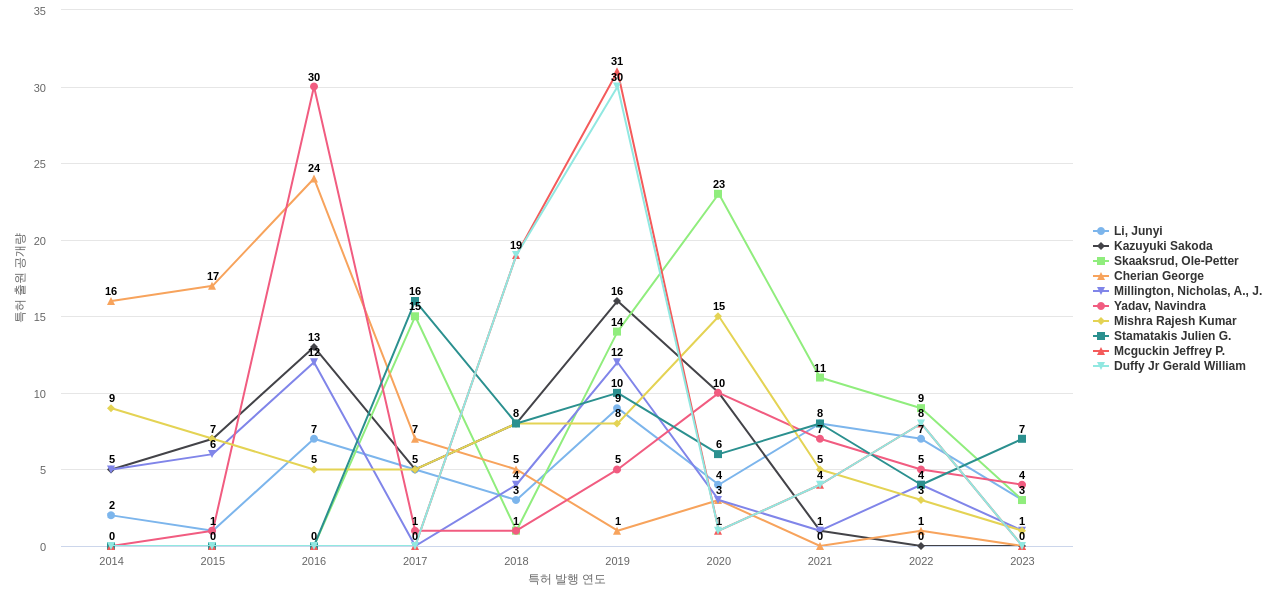 이 분야의 주요 핵심 연구자에는 1위 Li, Junyi, 2위 Kazuyuki Sakoda, 3위 Skaaksrud, Ole-Petter 등이 있습니다.