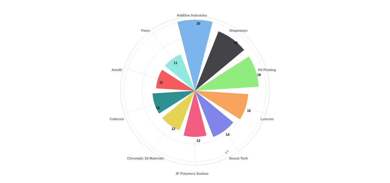 이 분야의 주요 전문성 높은 기업에는 1위 Additive Industries, 2위 Shapeways, 3위 R3 Printing 등이 있습니다.