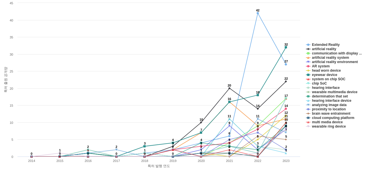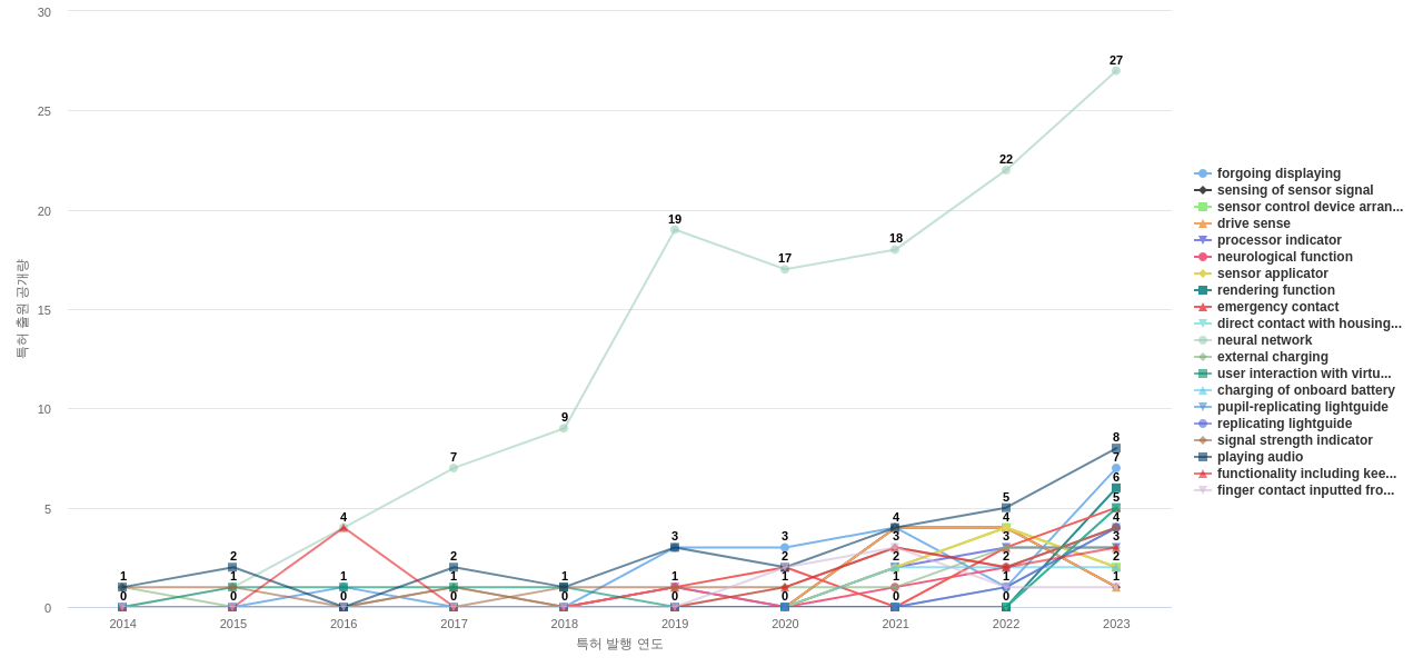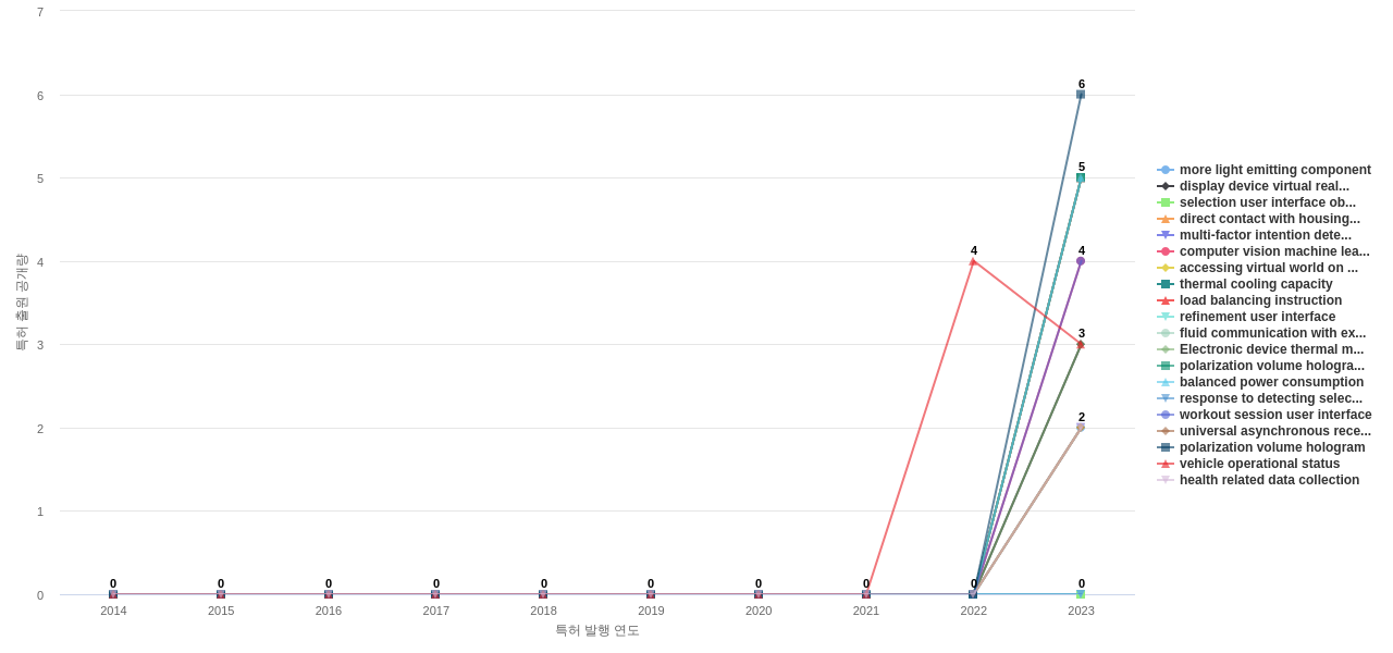 1) [기술 기획 조직]/[IP 조직] 고객, 주요 기업, 경쟁사, 밸류 체인이나 공급망 구성 기업의 웨어러블 컴퓨터 분야의 특허에 포함된 신규 등장 키워드나 급성장하고 있는 키워드(제품-부품, 소재-물질, 기능-작용, 컨셉 등)를 i) 파악하고, ii) 체계적으로 기술(테크) 센싱과 기술 마켓 센싱을 수행하며, iii) 그 결과를 필요 조직에 전파해야 하지 않을까요?