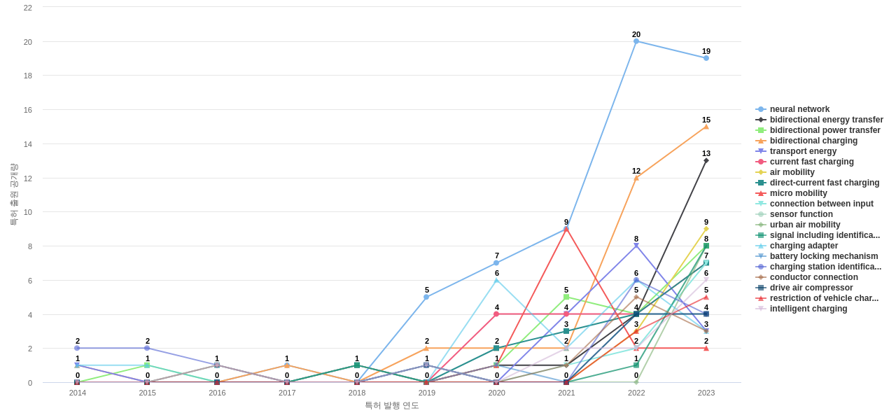 1) [기술 기획 조직]/[IP 조직] 고객, 주요 기업, 경쟁사, 밸류 체인이나 공급망 구성 기업의 전기차 배터리 충전, 충전스테이션 분야의 특허에 포함된 신규 등장 키워드나 급성장하고 있는 키워드(제품-부품, 소재-물질, 기능-작용, 컨셉 등)를 i) 파악하고, ii) 체계적으로 기술(테크) 센싱과 기술 마켓 센싱을 수행하며, iii) 그 결과를 필요 조직에 전파해야 하지 않을까요?