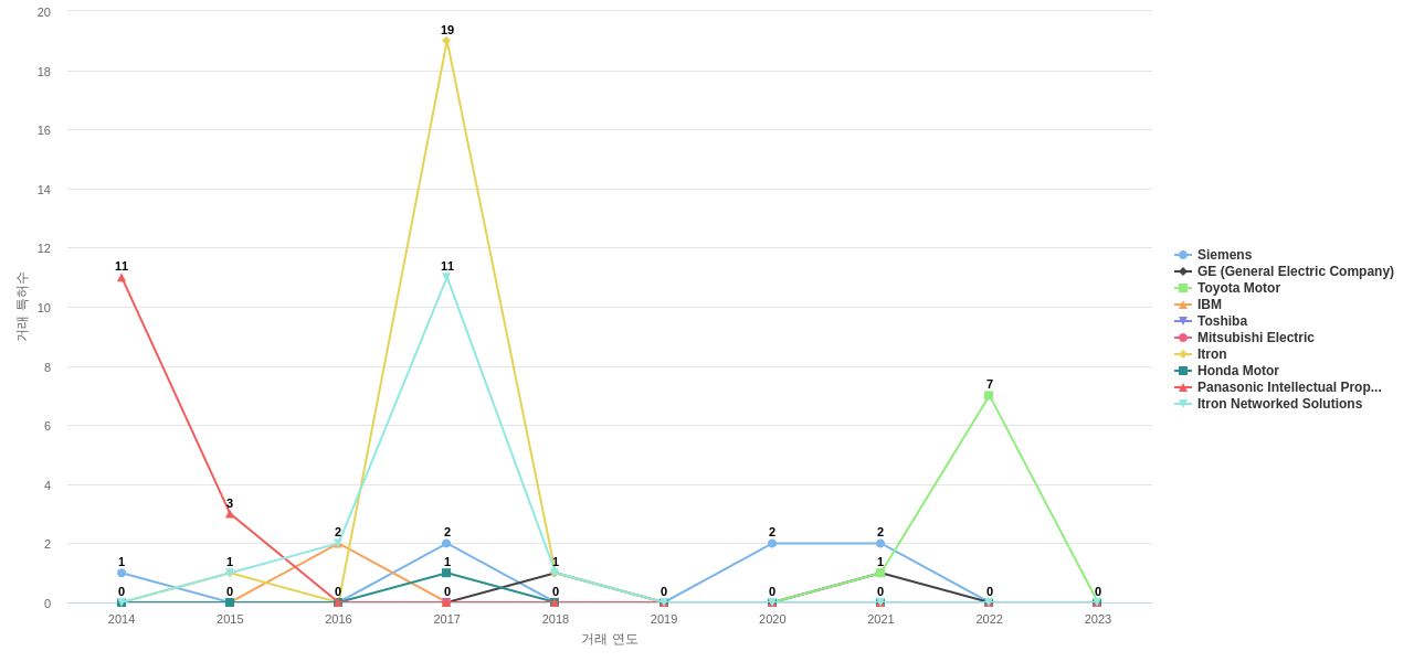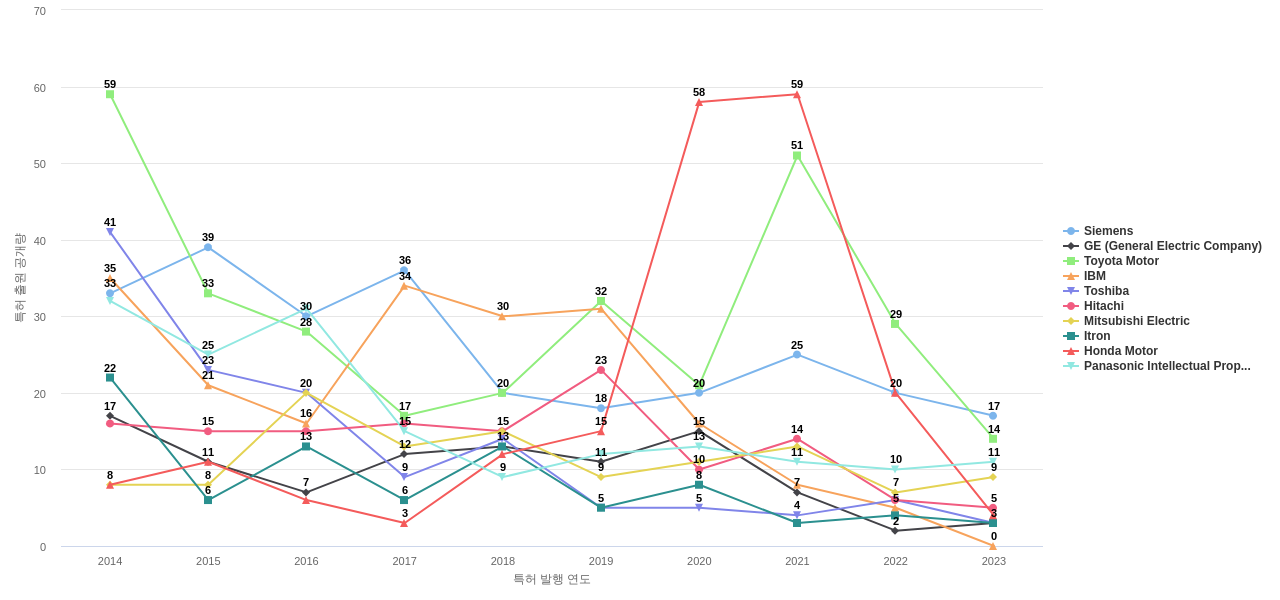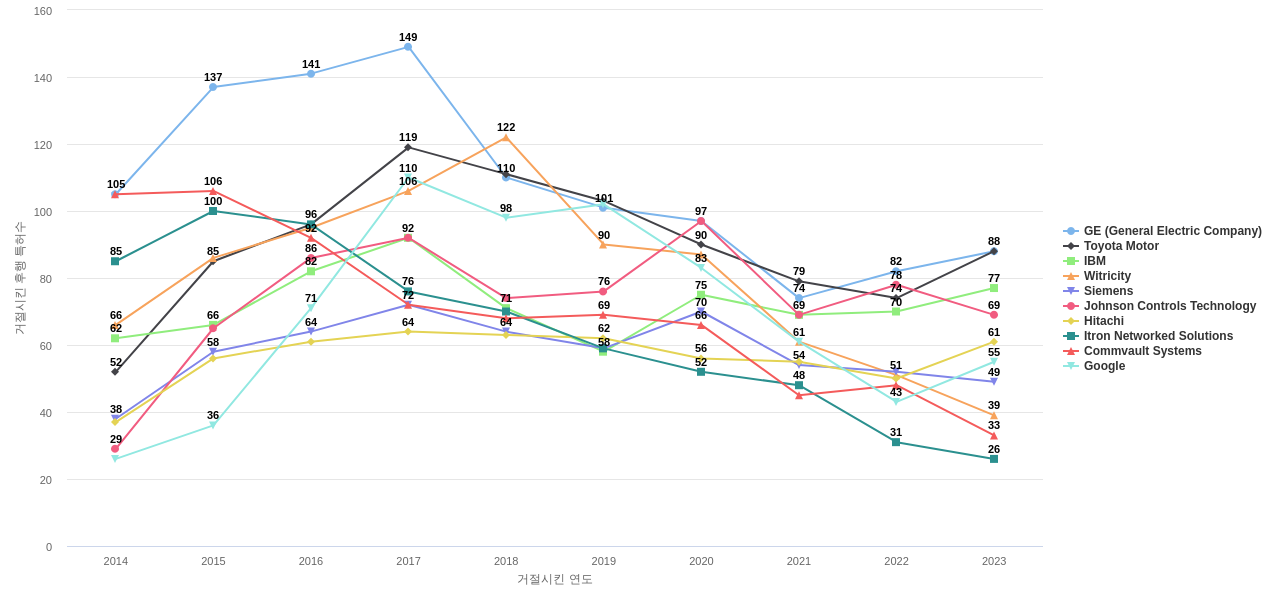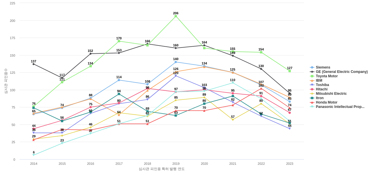 이 분야의 주요 핵심 기업에는 1위 Siemens, 2위 GE (General Electric Company), 3위 Toyota Motor 등이 있습니다.