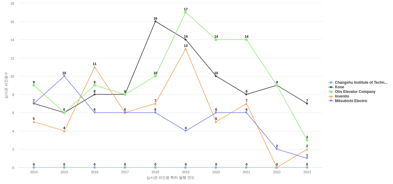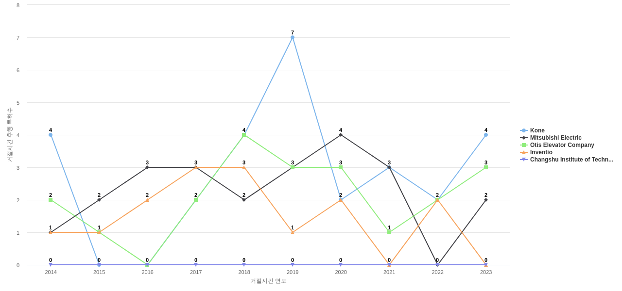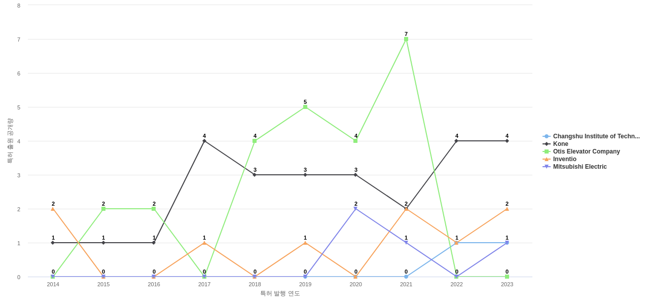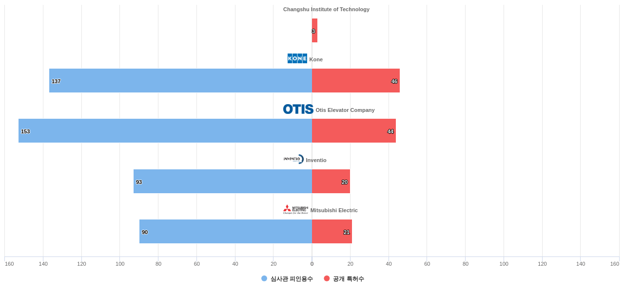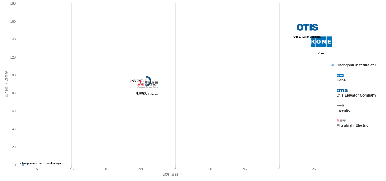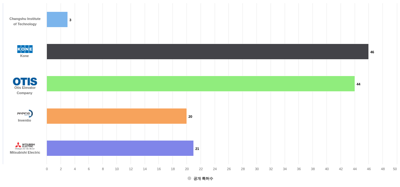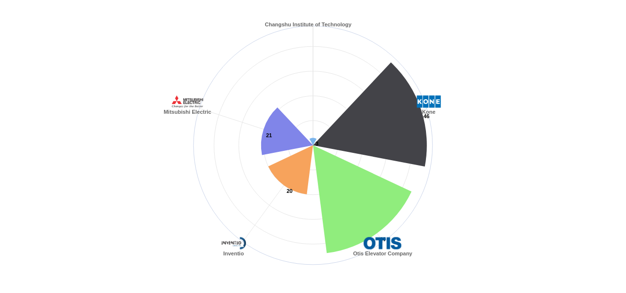 이 분야에서 보유 공개 특허가 많은 특화성 높은 기업에는 1위 Changshu Institute of Technology, 2위 Kone, 3위 Otis Elevator Company 등이 있습니다.