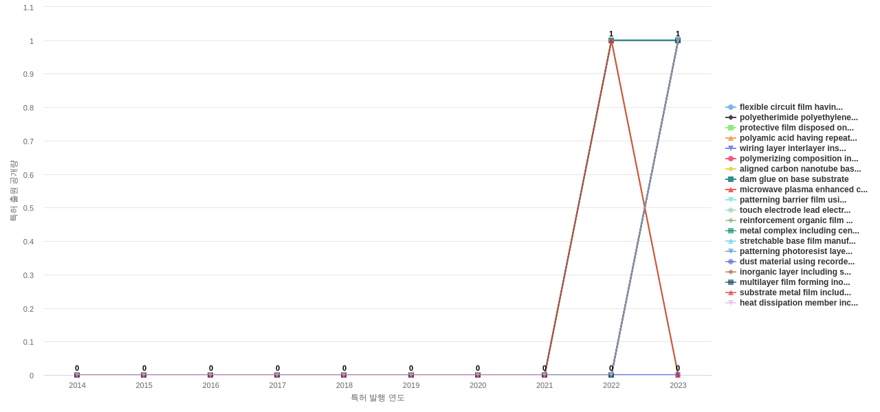 1) [기술 기획 조직]/[IP 조직] 고객, 주요 기업, 경쟁사, 밸류 체인이나 공급망 구성 기업의 Flexible OLED 분야의 특허에 포함된 신규 등장 키워드나 급성장하고 있는 키워드(제품-부품, 소재-물질, 기능-작용, 컨셉 등)를 i) 파악하고, ii) 체계적으로 기술(테크) 센싱과 기술 마켓 센싱을 수행하며, iii) 그 결과를 필요 조직에 전파해야 하지 않을까요?