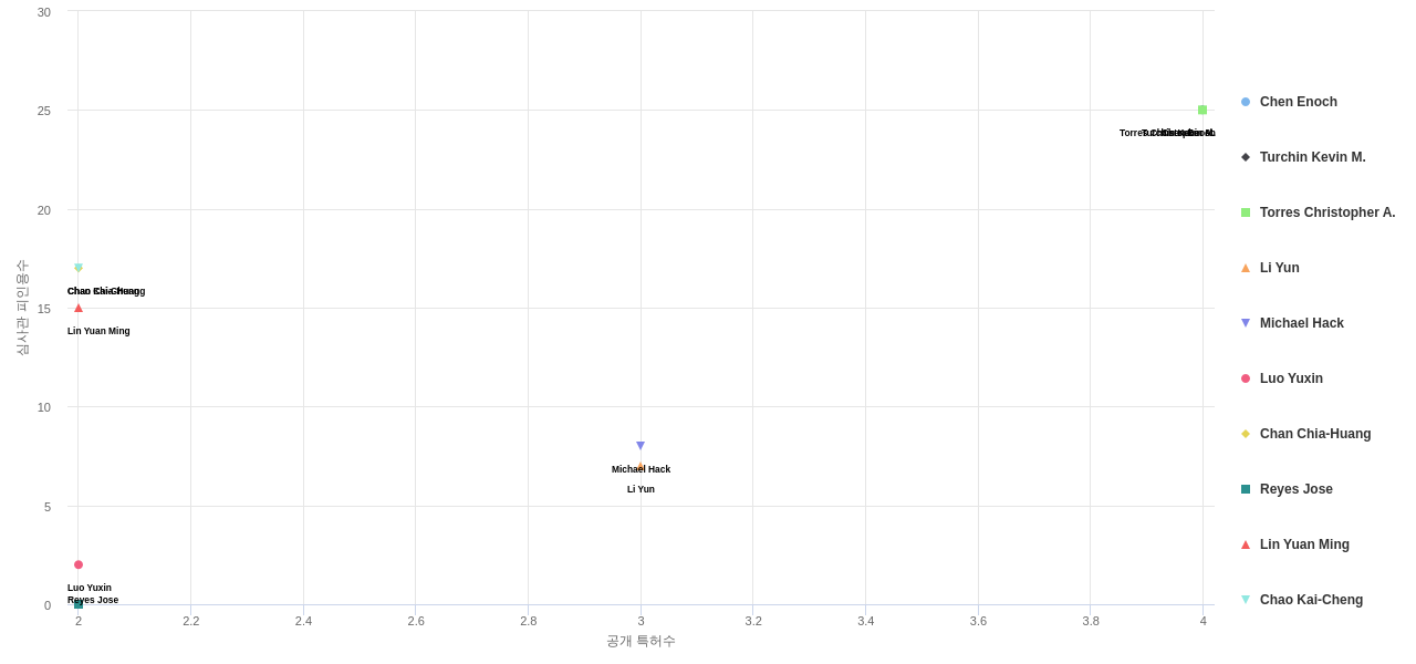 또한 Chen Enoch은 발명 특허수(공개 특허수)(4건), 등록 특허수(3건), 공개 특허수 점유율(점유율_공개)(2.92%), 심사관 피인용수(25회), 심사관 피인용수 점유율(점유율_FC-E)(4.14%), Luo Yuxin은 집중률(100.0%), Li Yun은 해외 특허 패밀리수(해외 Fam.)(6개)에서 1위 입니다. Turchin Kevin M.은(는) 발명 특허수(공개 특허수)(4건), 등록 특허수(3건), 공개 특허수 점유율(점유율_공개)(2.92%), 심사관 피인용수(25회), 심사관 피인용수 점유율(점유율_FC-E)(4.14%), Chan Chia-Huang은 집중률(100.0%), Michael Hack은 해외 특허 패밀리수(해외 Fam.)(3개)에서 2위 입니다. Torres Christopher A.은(는) 발명 특허수(공개 특허수)(4건), 등록 특허수(3건), 공개 특허수 점유율(점유율_공개)(2.92%), 심사관 피인용수(25회), 심사관 피인용수 점유율(점유율_FC-E)(4.14%), Reyes Jose는 집중률(100.0%)에서 3위 입니다. Lin Yuan Ming은 집중률(100.0%)에서 4위 입니다. Chao Kai-Cheng은 집중률(100.0%), 심사관 피인용수(17회), 심사관 피인용수 점유율(점유율_FC-E)(2.81%)에서 5위 입니다.