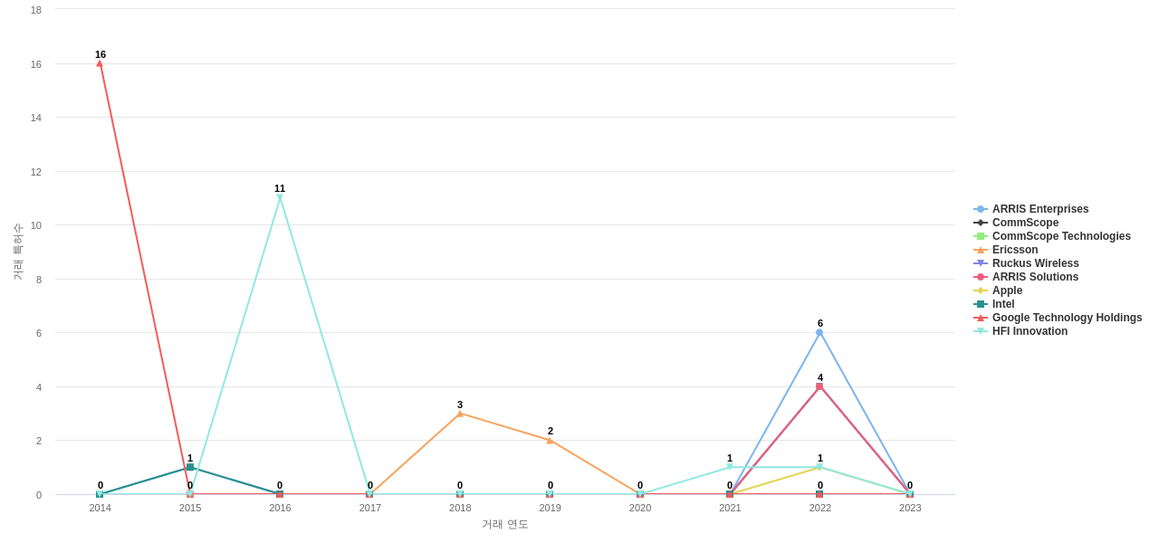 이 분야에서 ARRIS Enterprises의 보유 공개 특허의 2014년부터 2023년까지, 지난 9년간 연평균 성장률은 -0.06%로, 완만하게 감소하고 있습니다.