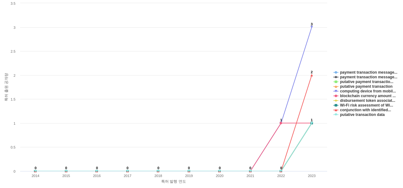 payment transaction의 공개 특허수는 1,107건입니다. payment transaction의 공개 특허수는 11년 이전부터 발생하기 시작하여 2017년에 139건의 최고값을 보입니다. 그리고, 이 값은 이번 연도인 2024년에는 33건, 1년 전인 2023년에는 64건, 2년 전인 2022년에는 55건을 보입니다.