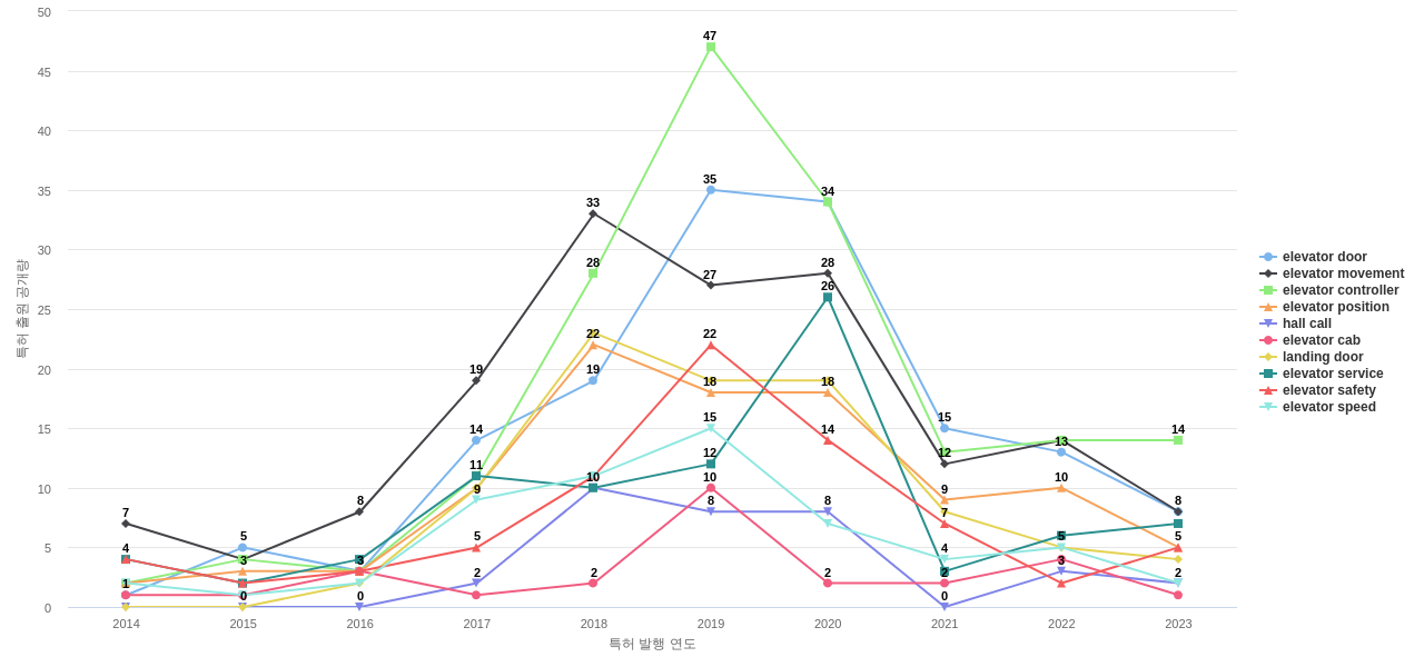 2) [R&D 조직]/[마케팅 조직] Otis Elevator Company의 특허에 포함된 신규 등장 키워드나 컨셉 표현 빅데이터를 활용하여, 여러분의 i) R&D의 기획, ii) 융합-복합-응용-활용 분야에 대한 ideation, 발굴, 스크리닝, iii) 특허 포트폴리오의 체계적인 확장을 시도해야 하지 않을까요? 거인의 어깨 위에 있으면 거인보다 멀리 볼 수 있습니다.