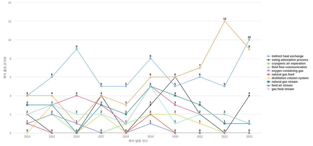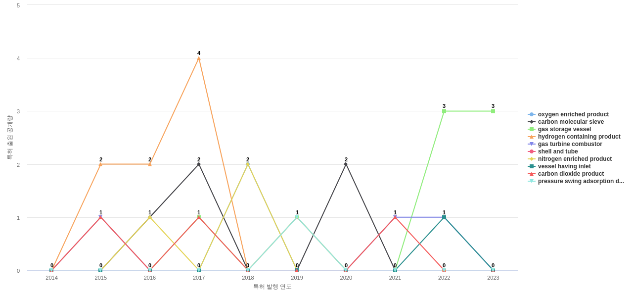 1) [기술 기획 조직]/[IP 조직] Air Products and Chemicals의 특허에 포함된 신규 등장 키워드나 급성장하고 있는 키워드(제품-부품, 소재-물질, 기능-작용, 컨셉 등)를 i) 파악하고, ii) 체계적으로 테크 센싱을 수행하며, iii) 그 결과를 필요 조직에 전파해야 하지 않을까요? 특히, 고객, 주요 기업, 경쟁사, 밸류 체인이나 공급망 구성 기업인 Air Products and Chemicals라면 이러한 활동이 더욱 더 중요하지 않을까요?