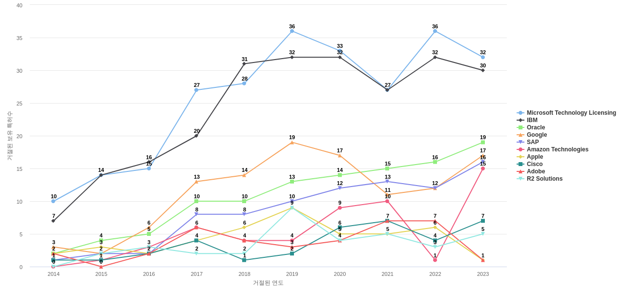 Microsoft Technology Licensing의 심사관 레퍼런스수는 604회입니다. Microsoft Technology Licensing의 심사관 레퍼런스수는 11년 이전부터 발생하기 시작하여 2021년에 114회, 2022년에 126회, 지난 해인 2023년에 147회의 최고값을 보입니다.