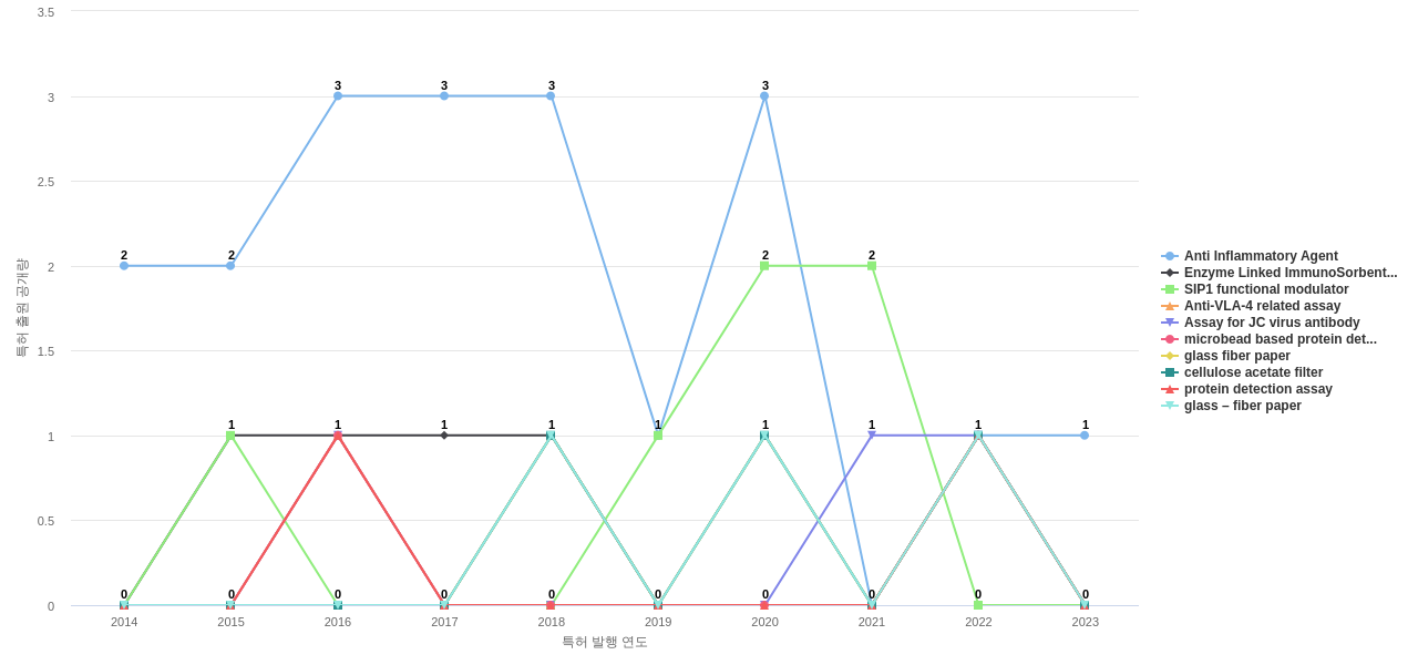 3) [제품 기획 조직]/[마케팅 조직] Biogen의 최신 특허를 분석하여, 그 기업의 근 미래 제품/서비스에 반영될 포함된 부품, 소재-물질, 기능-작용, 컨셉 표현 키워드를 early stage에서 i) 센싱하고, ii) 조직적으로 전파하고, iii) 전략적인 대응을 수행해야 하지 않을까요?