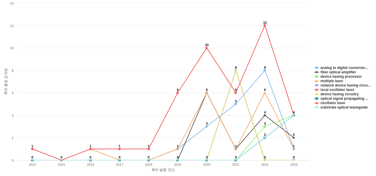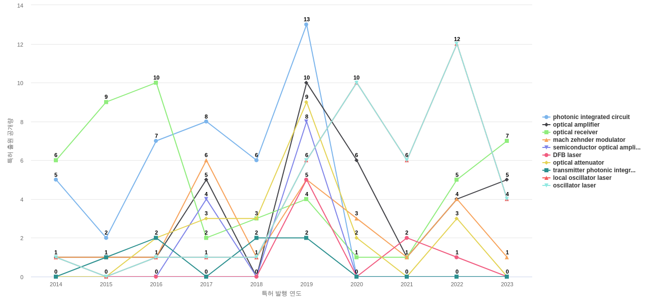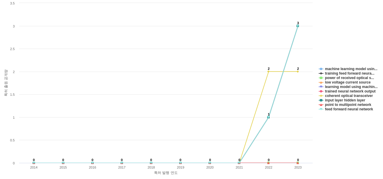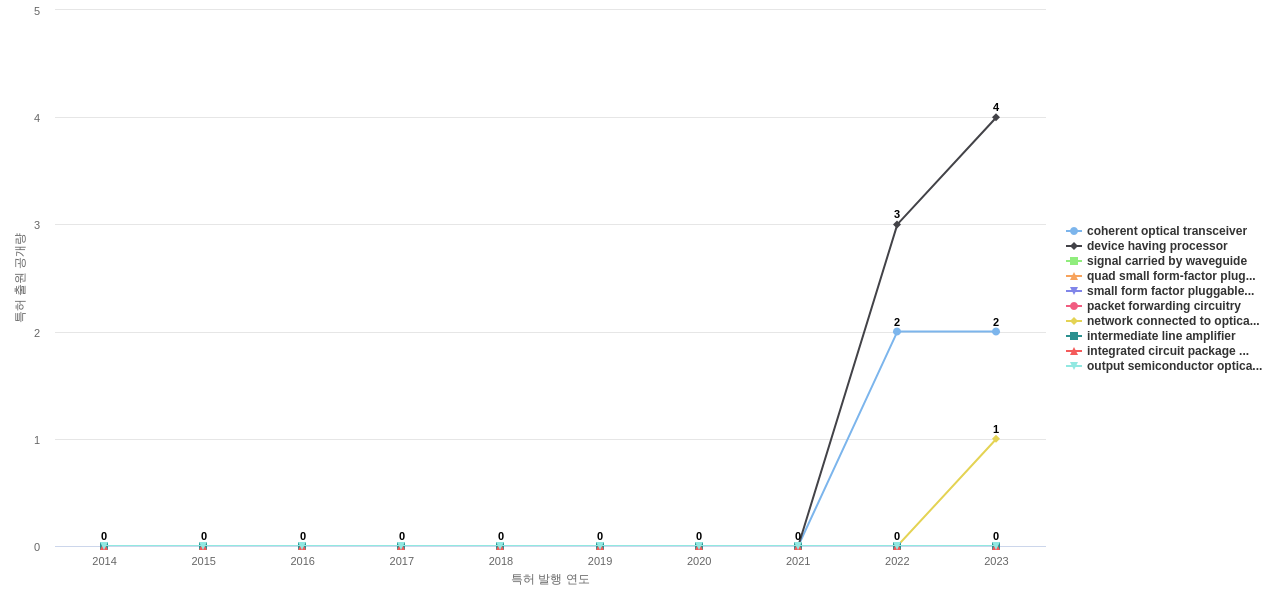1) [기술 기획 조직]/[IP 조직] Infinera의 특허에 포함된 신규 등장 키워드나 급성장하고 있는 키워드(제품-부품, 소재-물질, 기능-작용, 컨셉 등)를 i) 파악하고, ii) 체계적으로 테크 센싱을 수행하며, iii) 그 결과를 필요 조직에 전파해야 하지 않을까요? 특히, 고객, 주요 기업, 경쟁사, 밸류 체인이나 공급망 구성 기업인 Infinera라면 이러한 활동이 더욱 더 중요하지 않을까요?