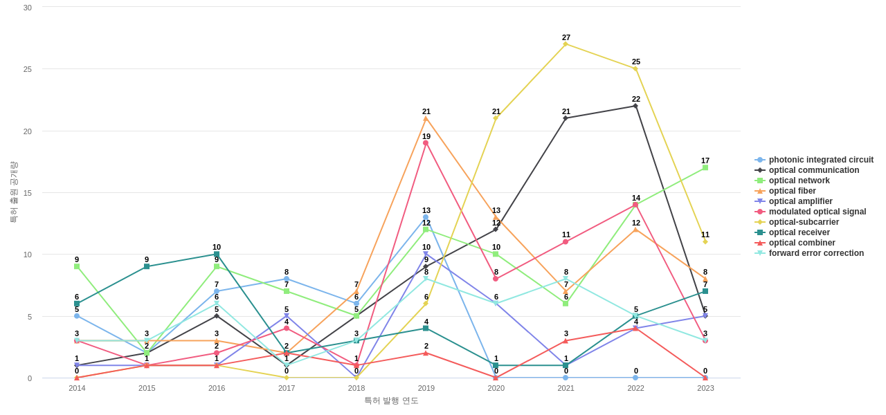 2) [R&D 조직]/[마케팅 조직] Infinera의 특허에 포함된 신규 등장 키워드나 컨셉 표현 빅데이터를 활용하여, 여러분의 i) R&D의 기획, ii) 융합-복합-응용-활용 분야에 대한 ideation, 발굴, 스크리닝, iii) 특허 포트폴리오의 체계적인 확장을 시도해야 하지 않을까요? 거인의 어깨 위에 있으면 거인보다 멀리 볼 수 있습니다.