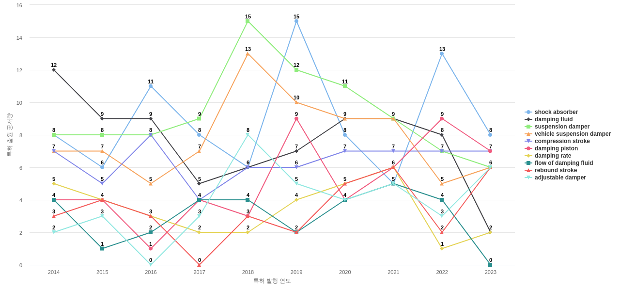 2) [R&D 조직]/[마케팅 조직] Fox Factory의 특허에 포함된 신규 등장 키워드나 컨셉 표현 빅데이터를 활용하여, 여러분의 i) R&D의 기획, ii) 융합-복합-응용-활용 분야에 대한 ideation, 발굴, 스크리닝, iii) 특허 포트폴리오의 체계적인 확장을 시도해야 하지 않을까요? 거인의 어깨 위에 있으면 거인보다 멀리 볼 수 있습니다.