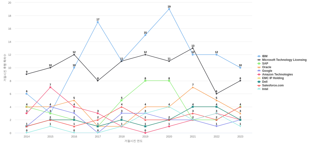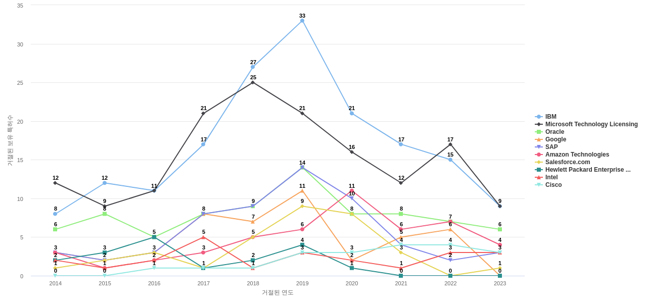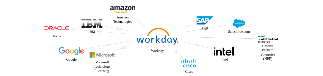 이 기업 보유 후행 특허가 참조하는 심사관 레퍼런스수가 많은 관련 기업에는 1위 IBM(364회), 2위 Microsoft Technology Licensing(284회), 3위 Oracle(200회) 등이 있습니다.