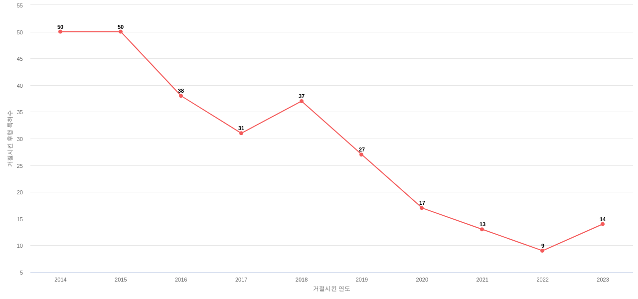 2) Marathon Oil가 보유하고 있는 특허가, i) 후속 특허에 의해 많이 인용되고 있는지(기술 영향력), ii) 후속 특허를 거절하는데 다수 사용되고 있는 지(기술 리더십)를 통해서, 이 기업의 기술 역량을 분석해 보세요. 특히, 이러한 동향이 최근에 빠르게 증가하고 있는지도 확인하세요.