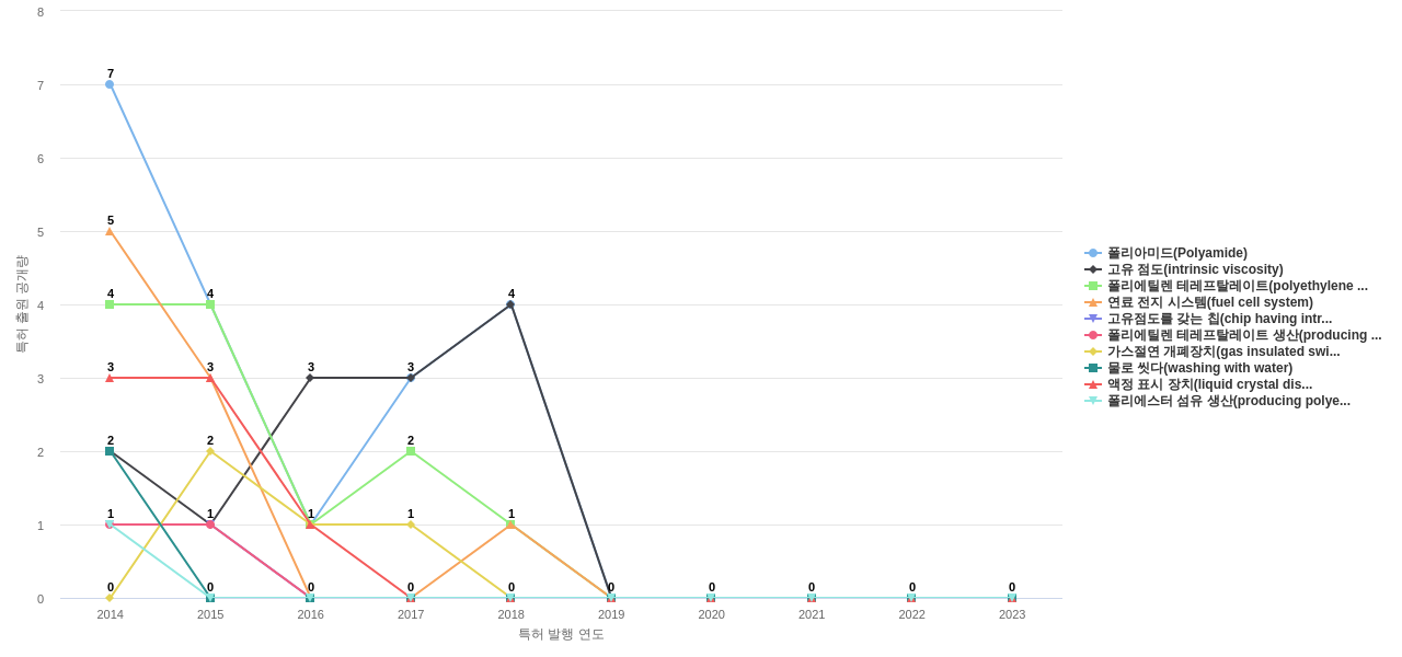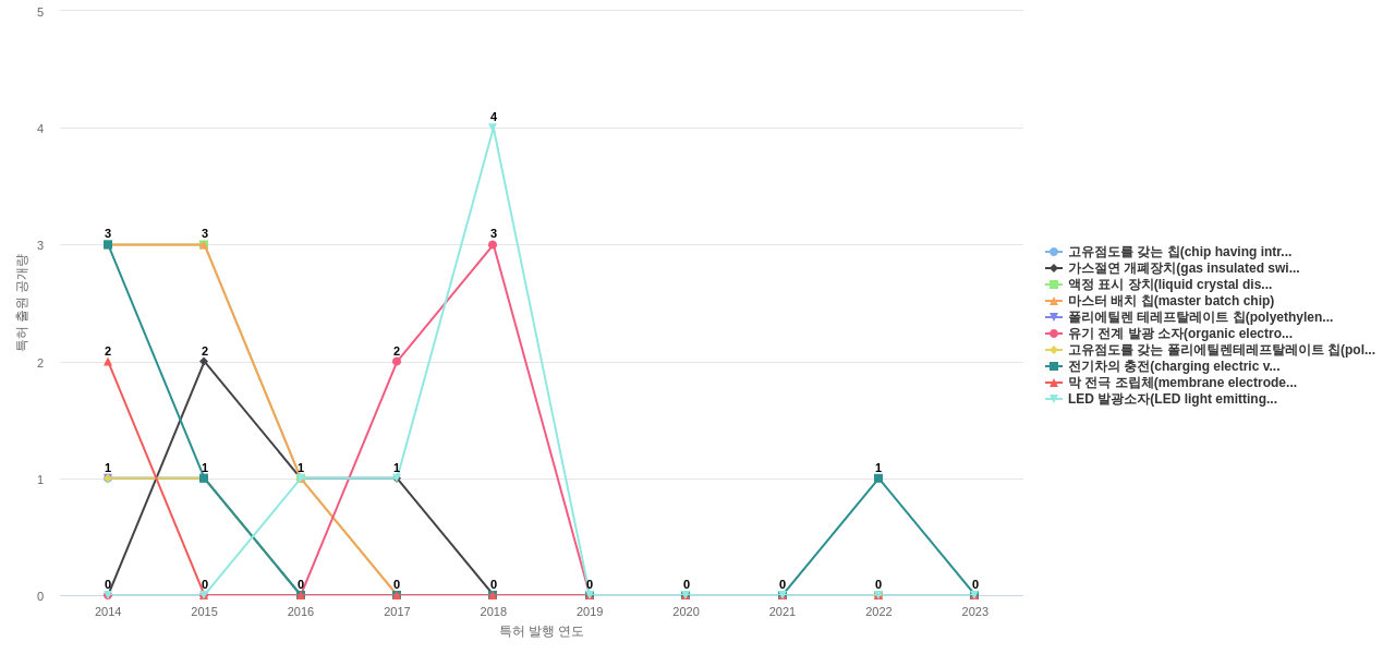 1) [기술 기획 조직]/[IP 조직] 효성의 특허에 포함된 신규 등장 키워드나 급성장하고 있는 키워드(제품-부품, 소재-물질, 기능-작용, 컨셉 등)를 i) 파악하고, ii) 체계적으로 테크 센싱을 수행하며, iii) 그 결과를 필요 조직에 전파해야 하지 않을까요? 특히, 고객, 주요 기업, 경쟁사, 밸류 체인이나 공급망 구성 기업인 효성라면 이러한 활동이 더욱 더 중요하지 않을까요?