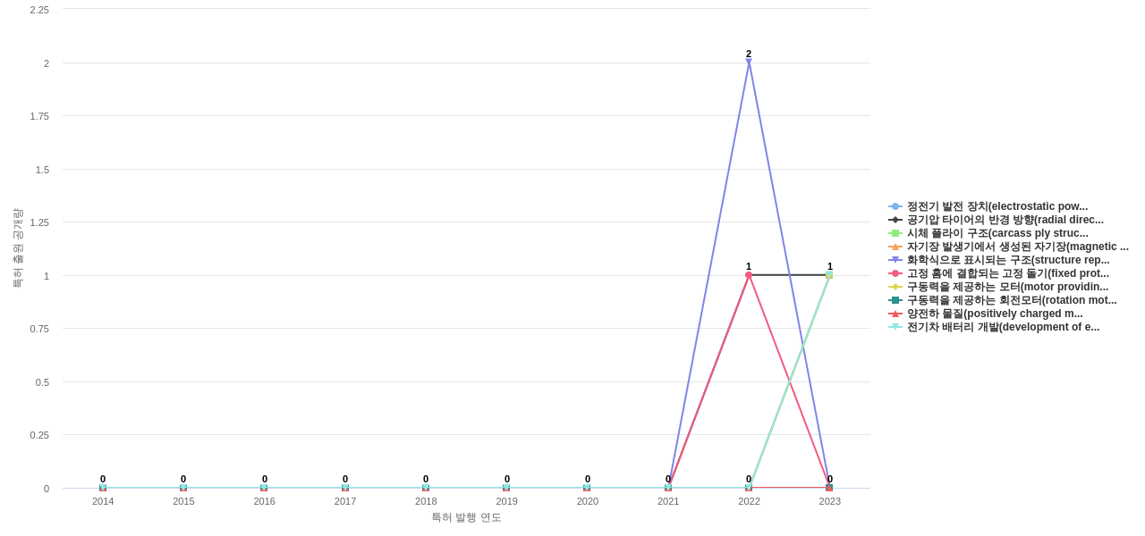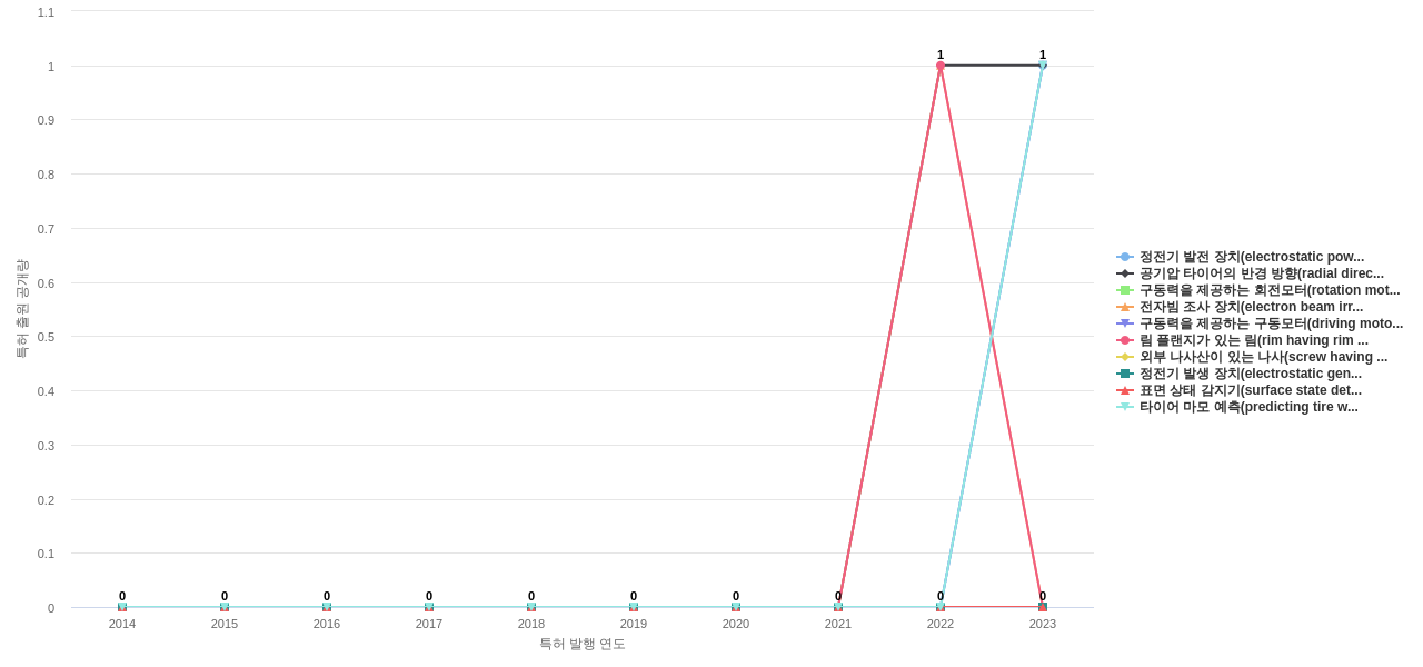 1) [기술 기획 조직]/[IP 조직] 금호타이어의 특허에 포함된 신규 등장 키워드나 급성장하고 있는 키워드(제품-부품, 소재-물질, 기능-작용, 컨셉 등)를 i) 파악하고, ii) 체계적으로 테크 센싱을 수행하며, iii) 그 결과를 필요 조직에 전파해야 하지 않을까요? 특히, 고객, 주요 기업, 경쟁사, 밸류 체인이나 공급망 구성 기업인 금호타이어라면 이러한 활동이 더욱 더 중요하지 않을까요?