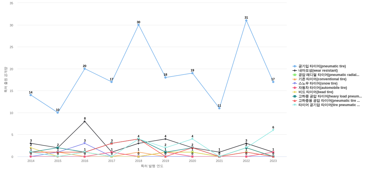 3) [제품 기획 조직]/[마케팅 조직] 금호타이어의 최신 특허를 분석하여, 그 기업의 근 미래 제품/서비스에 반영될 포함된 부품, 소재-물질, 기능-작용, 컨셉 표현 키워드를 early stage에서 i) 센싱하고, ii) 조직적으로 전파하고, iii) 전략적인 대응을 수행해야 하지 않을까요?