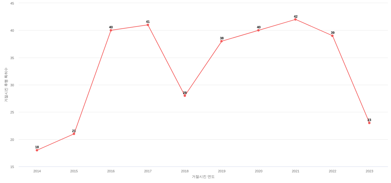 2) 한국항공우주산업가 보유하고 있는 특허가, i) 후속 특허에 의해 많이 인용되고 있는지(기술 영향력), ii) 후속 특허를 거절하는데 다수 사용되고 있는 지(기술 리더십)를 통해서, 이 기업의 기술 역량을 분석해 보세요. 특히, 이러한 동향이 최근에 빠르게 증가하고 있는지도 확인하세요.