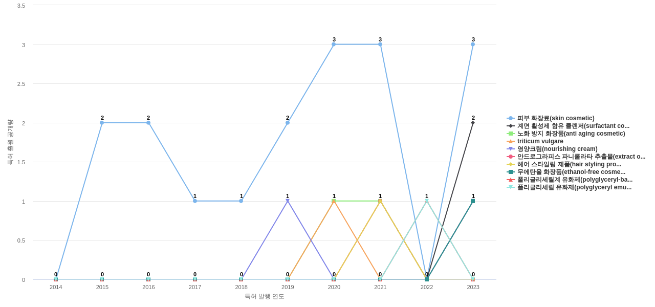 3) [제품 기획 조직]/[마케팅 조직] 코리아나화장품의 최신 특허를 분석하여, 그 기업의 근 미래 제품/서비스에 반영될 포함된 부품, 소재-물질, 기능-작용, 컨셉 표현 키워드를 early stage에서 i) 센싱하고, ii) 조직적으로 전파하고, iii) 전략적인 대응을 수행해야 하지 않을까요?